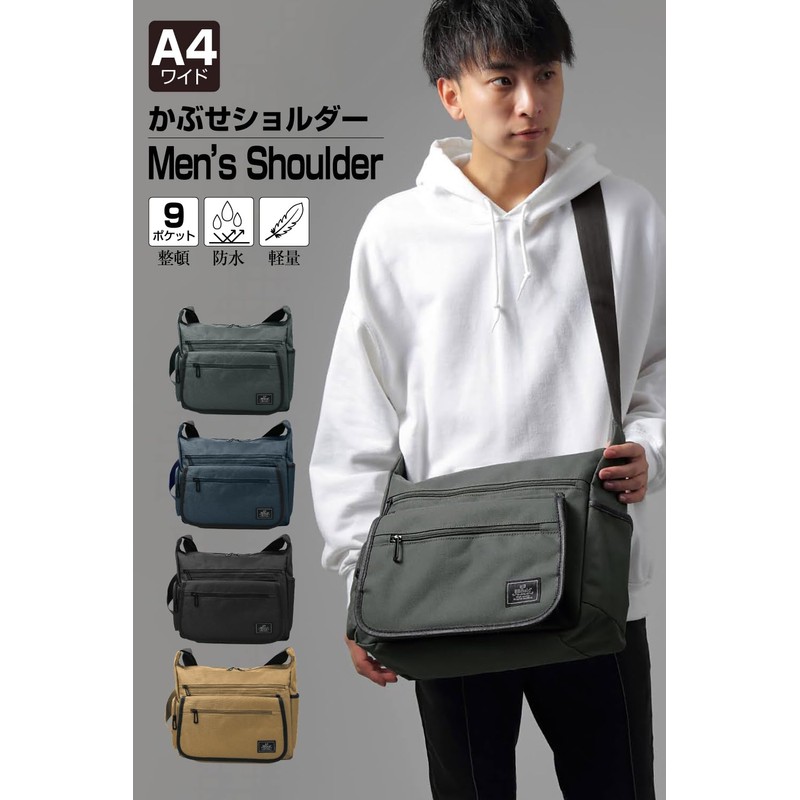 BB Field SM2101 Men's Shoulder Bag, Cross-body Design, A4, Wide, Waterproof, Lightweight, Unisex, gray (dark gray)