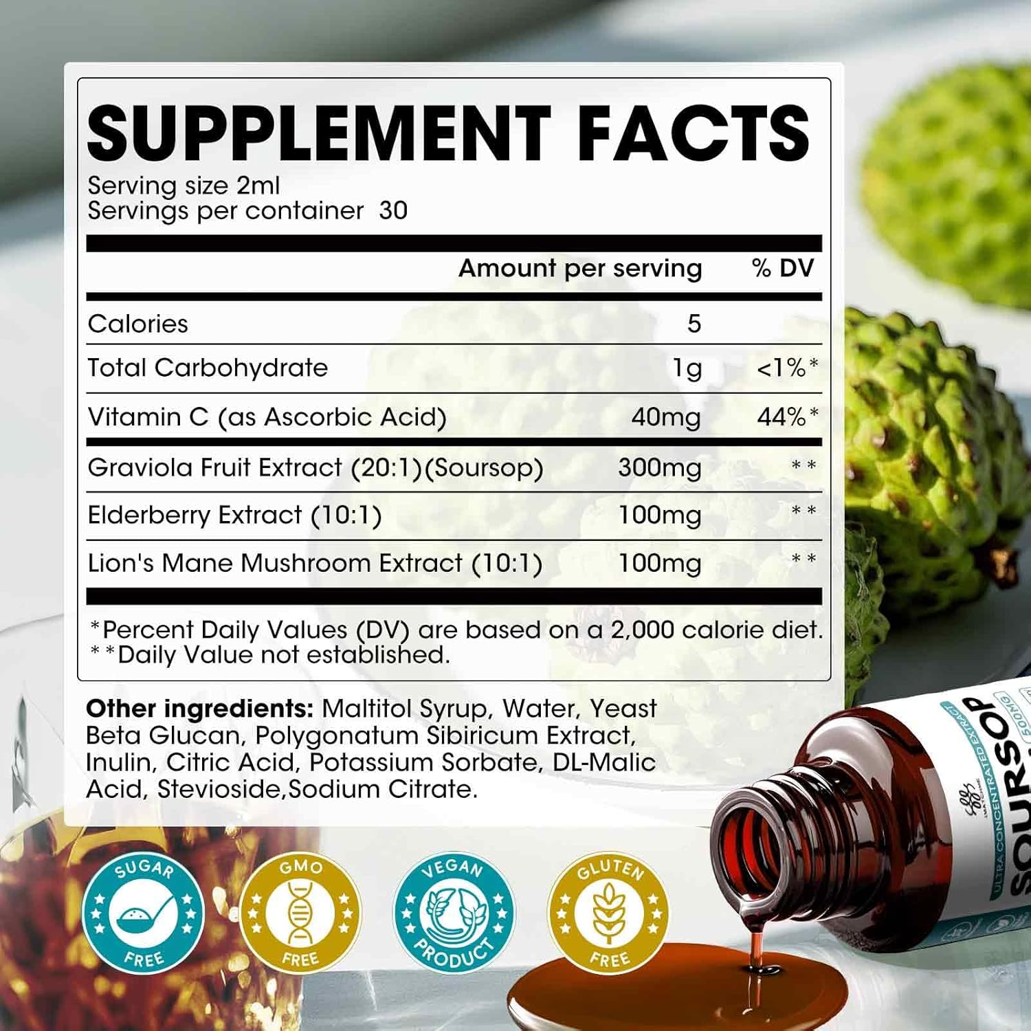 Bbeeaauu Soursop Graviola Liquid Drop with Elderberry, Lion Mane Mushroom 3X Power Herbal