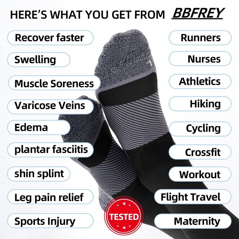 Bbfrey Compression Socks 20-30 mmHg for Men Women (3 Pairs) - Best Support Circulation