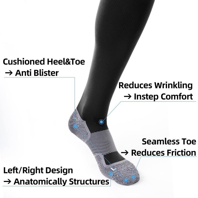 - 【Pro Gradient Compression】 Made by German medical-grade knitting machines and tested by Swiss professional pressure measurement instruments. Apply maximum compression at the ankle and gradually decrease from the ankle to the calf, allowing venous blood to return to the heart and promote blood circulation.