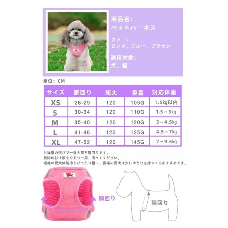 BBGS Pet Harness, Dog Harness, Harness Set, For Small Dogs and Cats, Leased, Stylish, Cute, Popular, Reduces Coughing, Breathable, Easy to Put On and Take Off, Collar, Reflective Tape at Night, Safe,
