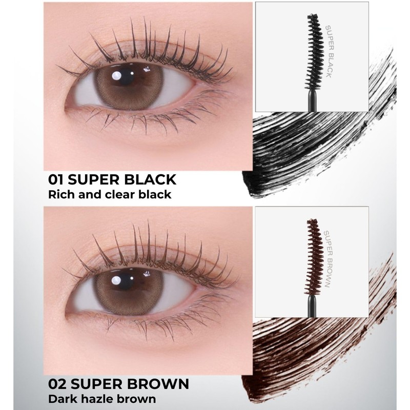 BBIA Never Die Mascara Extreme - Delicate Curling Ultra Long-Lasting Fixing Power Volumizing Lengthening Intense Length Natural Full Lashes No Smudging & Clumping K-Beauty (02 SUPER BROWN)