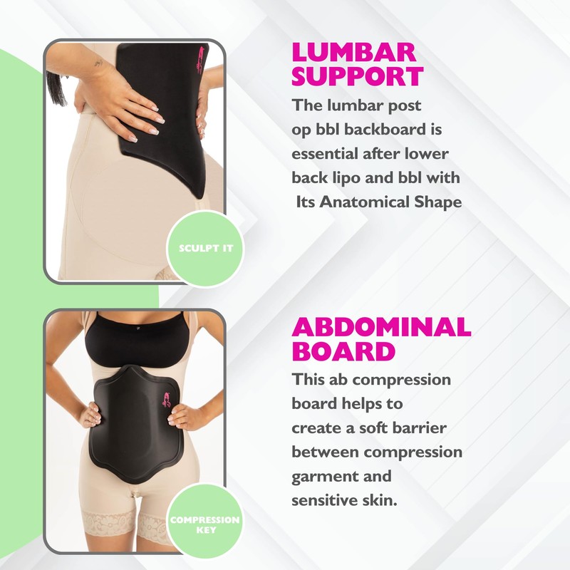 - 👍 BBL POST SURGERY SUPPIES KIT INCLUDES:3 Pack Lipo Foam,1 Ab Board,1 Lumber Backboard,1 BB Pillow,1 Female Urinal The 5 essential bbl recovery supplies that can be used with your faja colombiana bbl shapewear.Post-Surgery Comfort: Our BBL pillow after surgery sitting provides relief and comfort during your recovery process. The unique design ensures no pressure is applied to your sensitive areas, making it the perfect butt pillow after surgery.