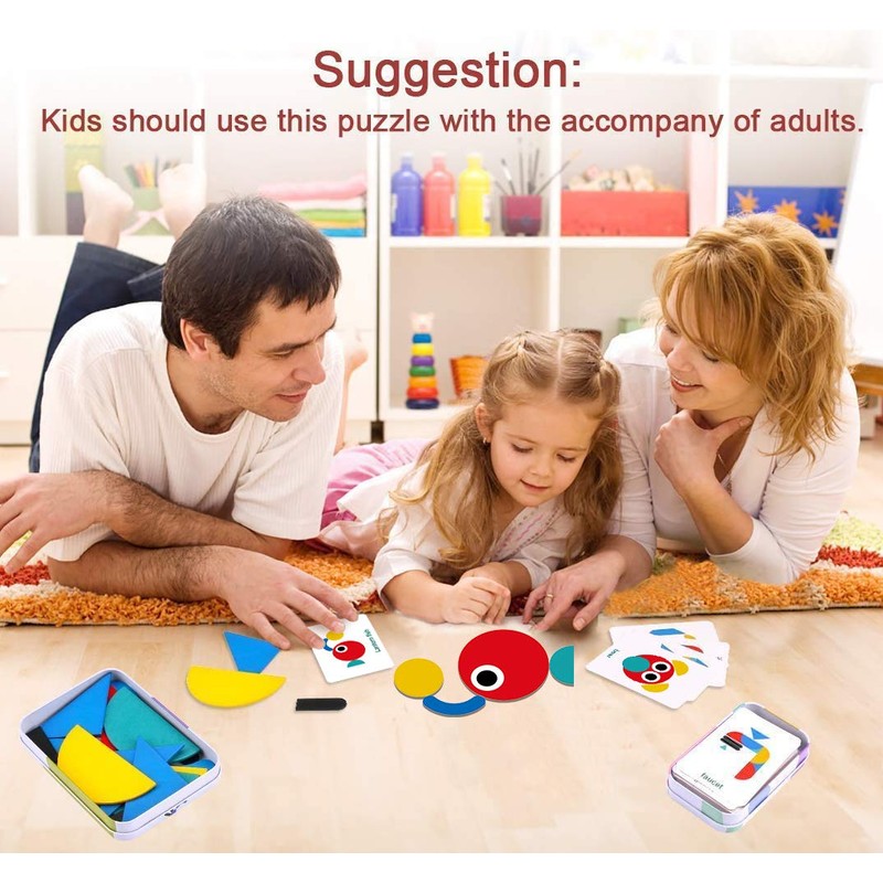- 【High Quality & Environmentally Friendly Material】: This double tangram is made of high quality wood material, non-toxic, well made and without sharp edges or corners. Don't hesitate to let your children play with it. Strong and sturdy, not easy to break, which ensures that this tangram for children has a long service life. And we offer 100% satisfaction guarantee.