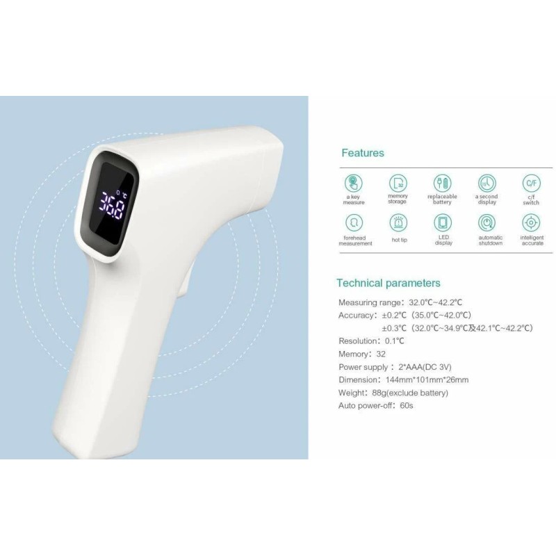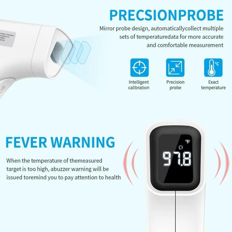 - The non-contact infrared thermometer can detect the temperature of forehead from a distance of up to 10cm (3.9inches).
