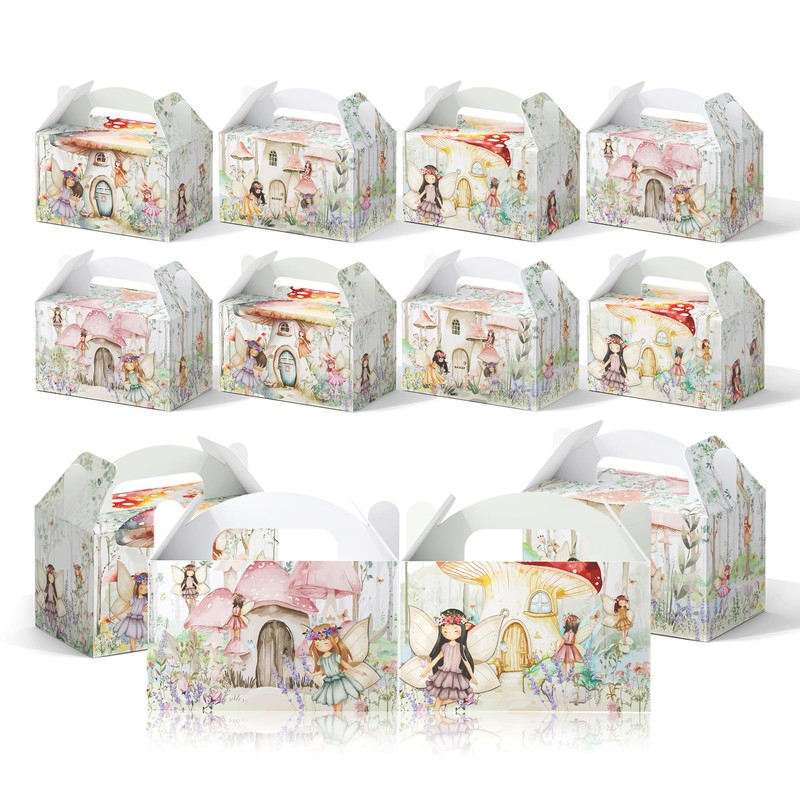 BBNEWPARTY 12Pcs Whimsical/Fairy Theme Party Favor Boxes - Rectangular, Snap Closure, Fairy Party Decorations