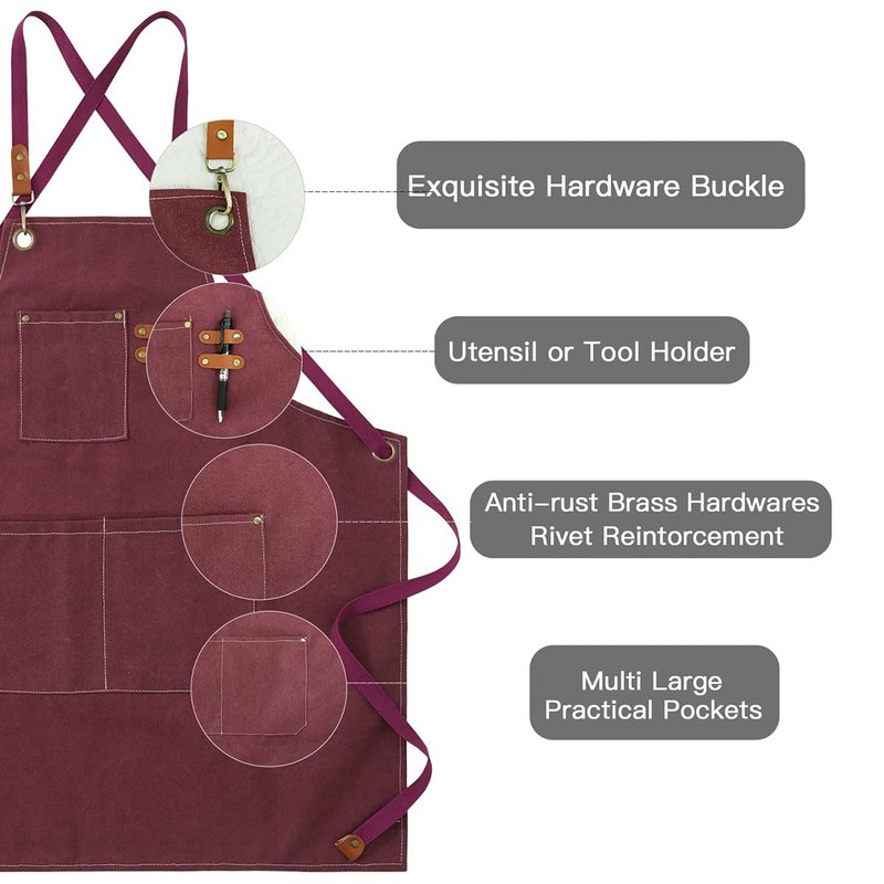 • High Quality Material The apron for men is made of thickened canvas, waterproof, breathable and heat resistant, very comfortable to wear; exquisite workmanship, strong and neat stitching.