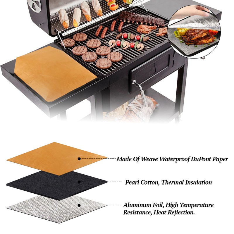 Large Capacity: This BBQ blanket provides ample space for resting multiple pieces of meat or storing various grilling tools, making it a versatile addition to your BBQ toolkit.