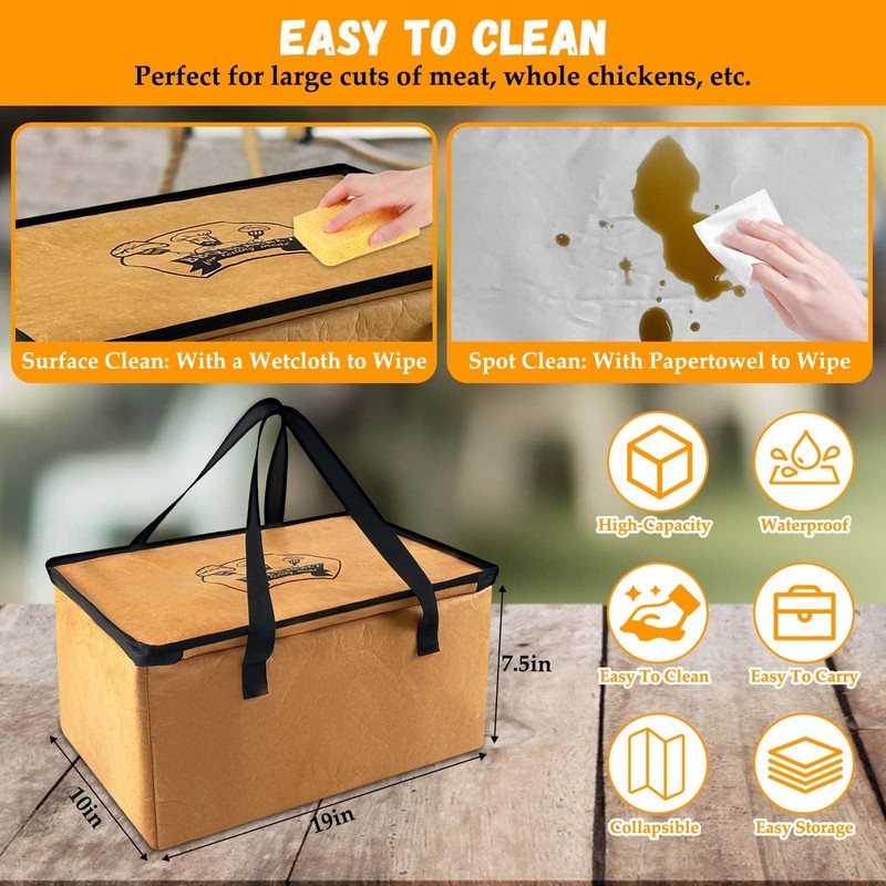 - 【EASY TO CLEAN】- Our insulated meat resting bag is perfect for BBQ Large Briskets / Pork Shoulders / Turkeys food delivery. Cleaning inside and outside can be easily done using a damp cloth and paper towel with soap and warm water.