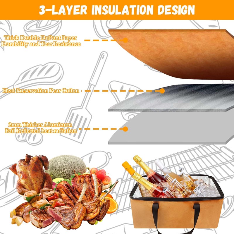 - 【LARGE CAPACITY】- This BBQ blanket bag Size 19” L x 10” W x 7.5” H. Conveniently carry large quantities of grilled meats for picnics, camping, beach days, tailgates, potlucks or parties.