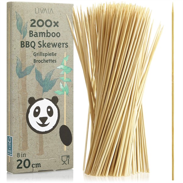 BBQ Skewers: 200x Bamboo Skewers – Medium Large Skewers 7.8in – Barbecue Skewers and Marshmallow Roasting Sticks – Wooden Sticks – BBQ Sticks LIVAIA