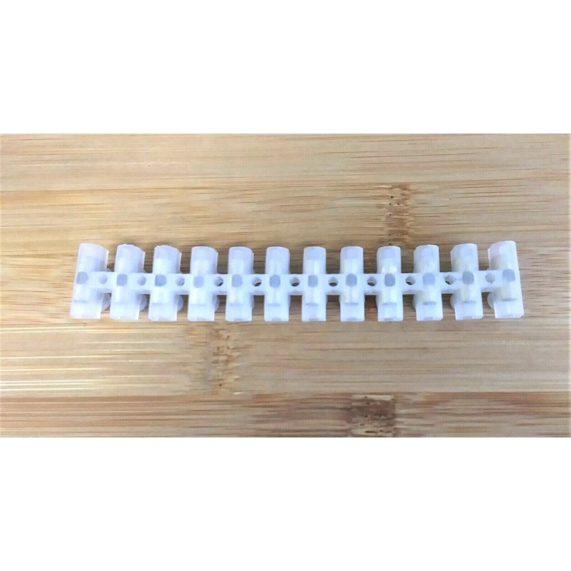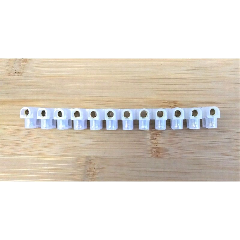 BBT marine grade fully insulated 20 amp 12 circuit safety strip. These take wire sizes from 22 to 10 gauge & they measure 4-1/2" long X 3/4 wide. These handy strips can be easily cut to any size you need and don't require wire terminals or covers and are very safe & easy to use, just insert wires & tighten screws, the connections are always protected. The mounting holes are every 3/8". Our price includes free super fast next day 1st class shipping in the USA, a money back guarantee & great customer service. Thanks for looking, Capt. Bob