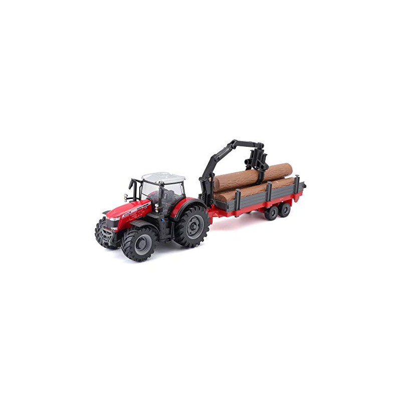 Bburago B18-31659 10CM Massey FERGUSSON 8740S Tractor with Log Trailer, Assorted Designs and Colours
