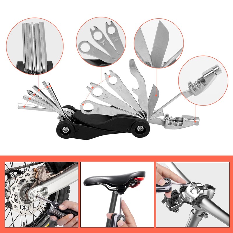 - Bicycle repair kit: 17 in 1 bicycle tool set