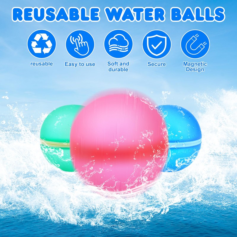- [WIEDERVERWENDBAR] – Unsere Wiederverwendbare Wasserbomben Selbstschließend verwenden Magnettechnologie, um Wasserlecks zu verhindern, und verfügen über eine starke Versiegelung, wodurch sie wiederverwendbar sind, Keine Unordnung und Verschwendung wie bei normalen Wasserbomben.Dies kann Ihr Wasserspiel etwas einfacher und bequemer machen.