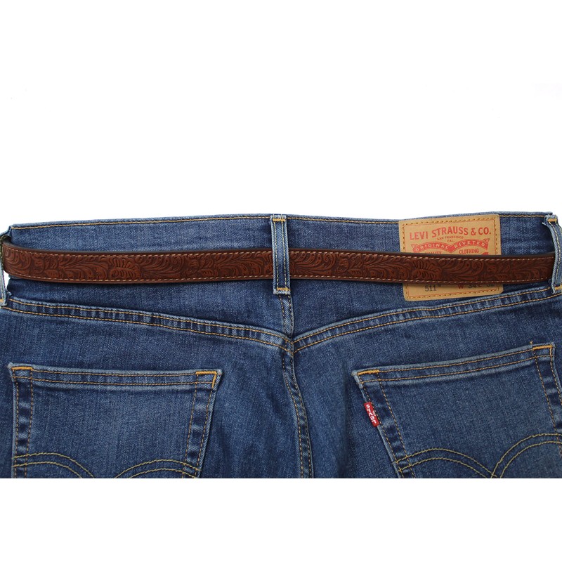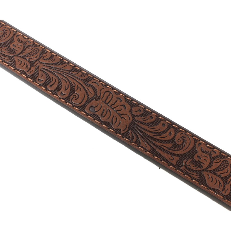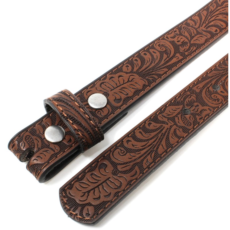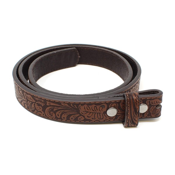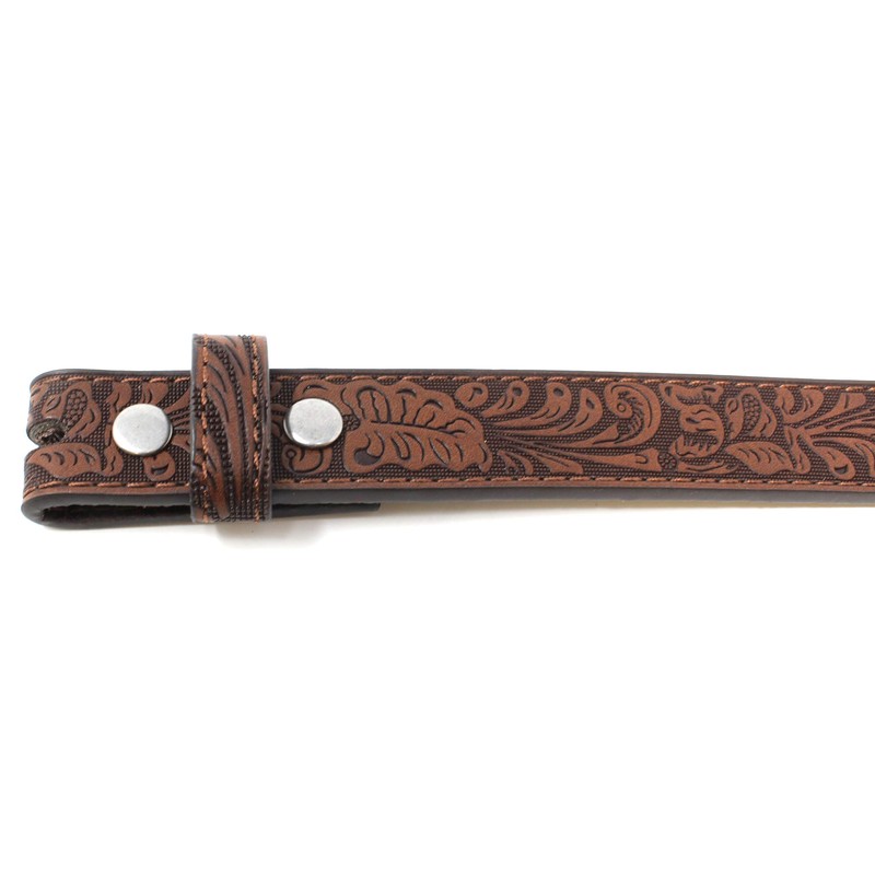 BC Belts Womens Thin Leather Belt Strap with Embossed Western Scrollwork 1" Wide with Snaps, Brown, X-Small (26-28)