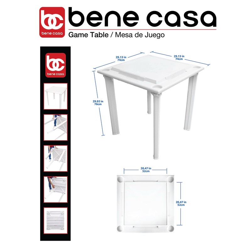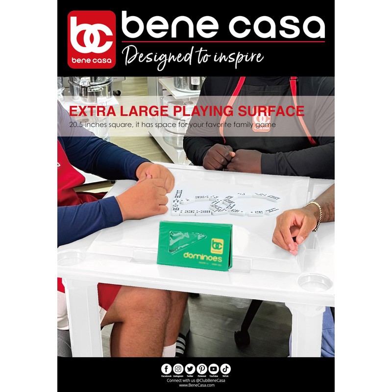 Bene Casa - White Indoor & Outdoor Domino and Game Table Includes Domino and Scrabble Tile Racks and Cup Holders - Table Legs are Removable for Easy Storage
