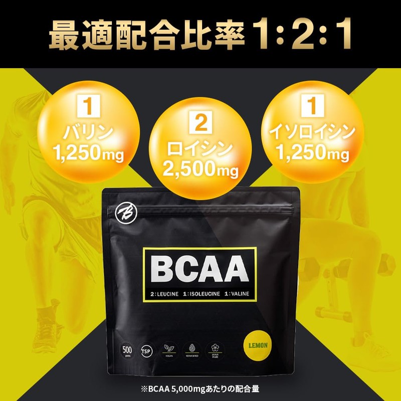 - ✅【配合バランス】 ロイシン・バリン・イソロイシンを理想的なバランスといわれる2:1:1で配合。1食分5,000mgあたり、ロイシン:2,500mg バリン:1,250mg イソロイシン:1,250mg 摂取可能です。✅【甘味料のこだわり】 植物由来のステビアとレモン果汁をふんだんに使ったレモンパウダーを使用。一般的な甘味料であるアスパルテームやスクラロースを一切使用しておりません。人工的な甘さを避けた美味しく爽やかなフレーバーです。✅【体によく届く工夫】 BCAAの体内デリバリーをサポートする成分を配合。黒コショウ抽出エキス成分「バイオペリン」が体内利用効率を高めます。✅【抜群の溶けやすさ】 水に溶けやすいパウダーです。水を使って粉末粒子を大きくする造粒加工を追加することで、水への溶解性を高めると同時に開封時の粉舞いを防ぎます。✅【たっぷりのBCAA】 一般的なBCAA商品によく見られる過度な甘味料や着色料、乳化剤などは使用せず、BCAA以外の成分を最低限にとどめることで、BCAAの含有量を高めています。