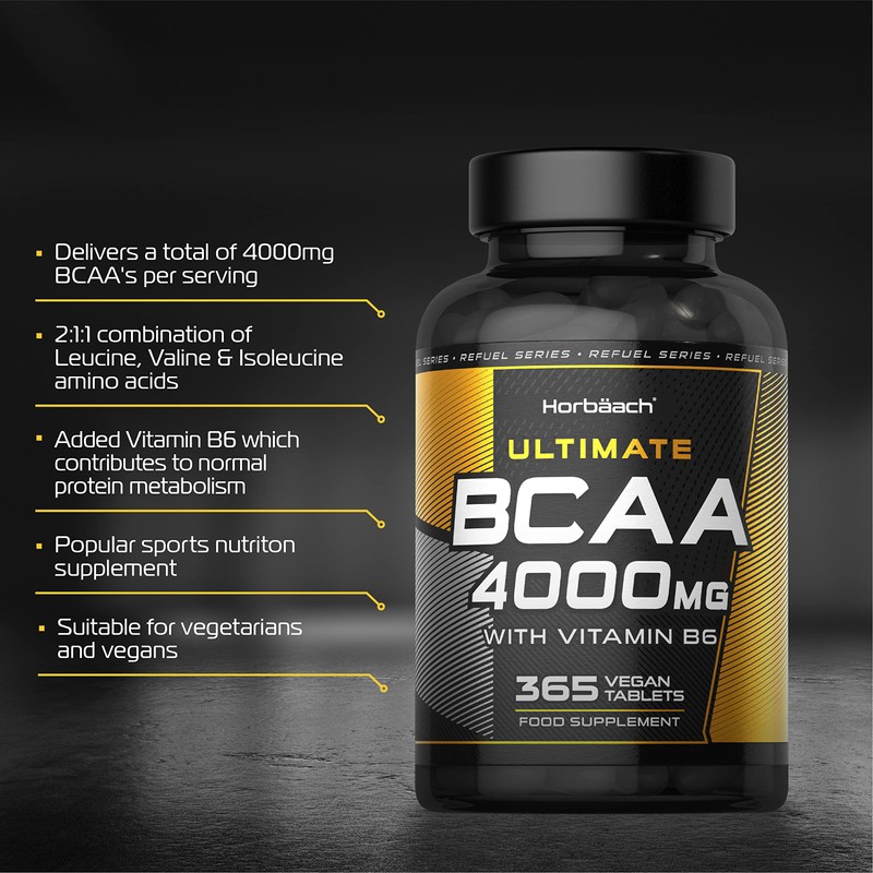 BCAA Tablet | 4000mg BCAAs per Serving | 365 Vegan Tablets | Essential Amino Acid Supplement with Vitamin B6 | by Horbaach