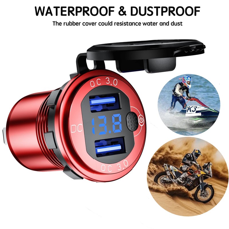 BCEY 12V araba USB soketi Anahtarlı araba şarjı 24V 36W su geçirmez Hızlı Şarj 3.0 Motosiklet, karavan, tekne, kamyon için dahili USB soketi