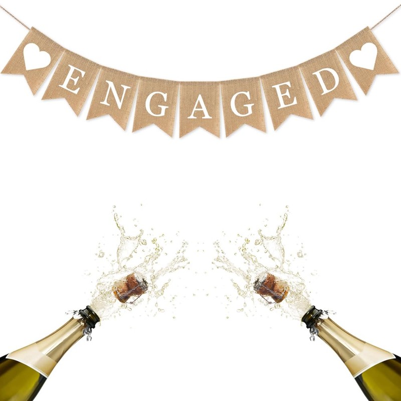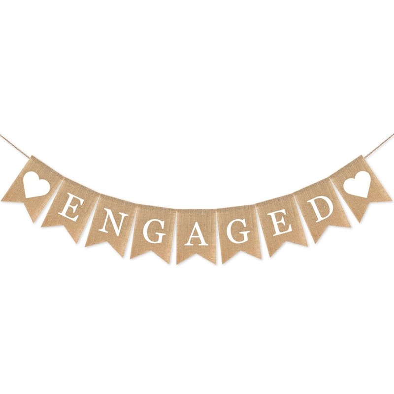 Bchinb Engaged Burlap Banner Rustic Engagement Wedding Party Decorations Bunting Garland 5" x 7" (Total Length: 8.2 ft) Natural