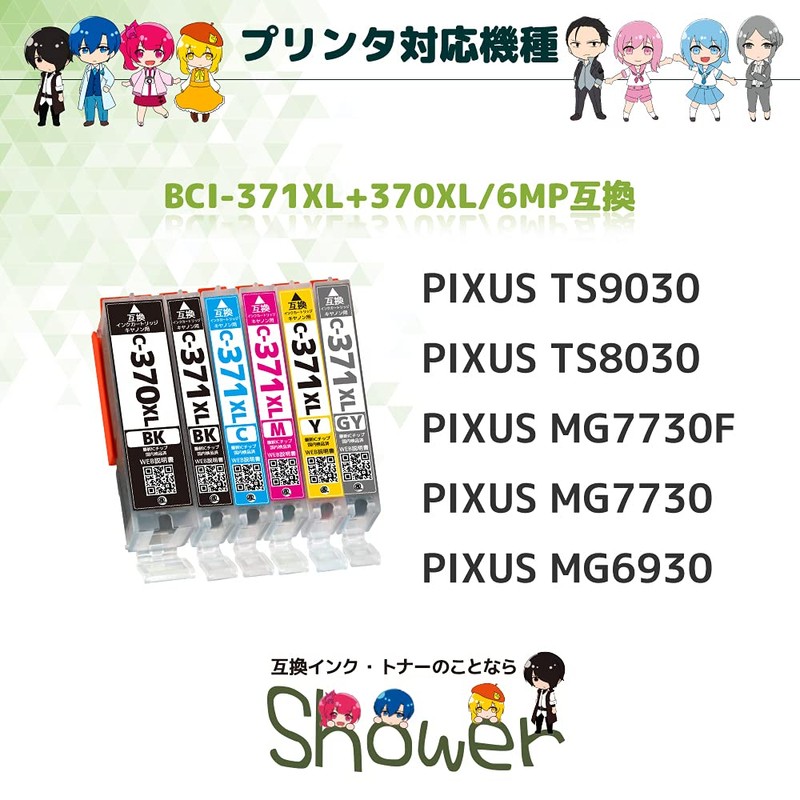 | Size: | BCI-371(BK/C/M/Y/GY)+BCI-370XLBK 6色【安心一年パック】 |