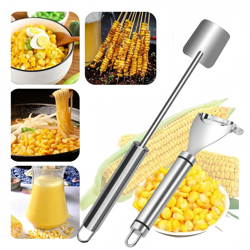 - [ Practical kitchen tool ] It is a small cooking assistant, which can help cooks and cooking enthusiasts to quickly peel corn kernels from corn cobs to obtain many corn kernels, which are used in your various cuisines, such as salads, pizza, cream corn soup, corn cake and so on