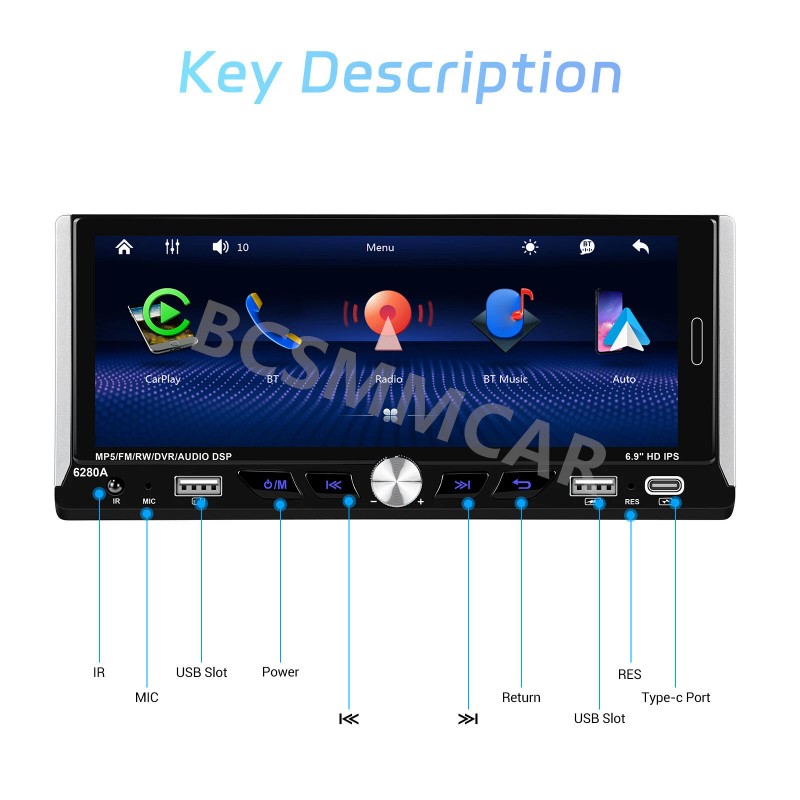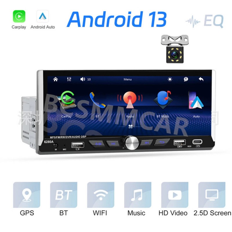 BCSMMCAR 1 Din Car Radio Multimedia Player GPS Navigation Mirror link 6.9in 2G+64G W/Cam