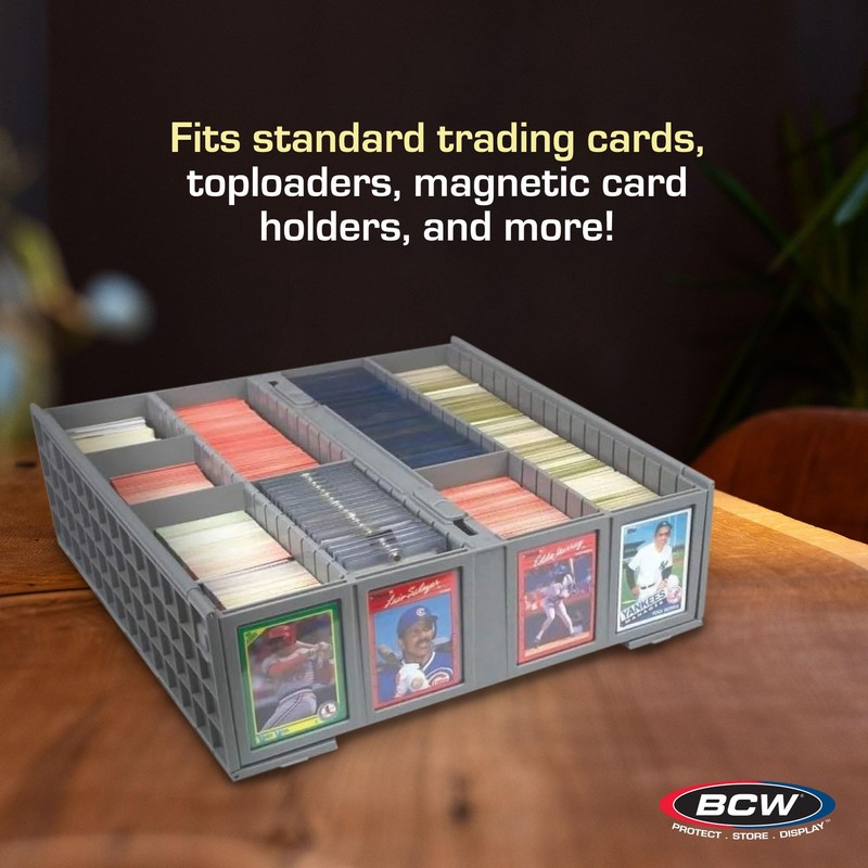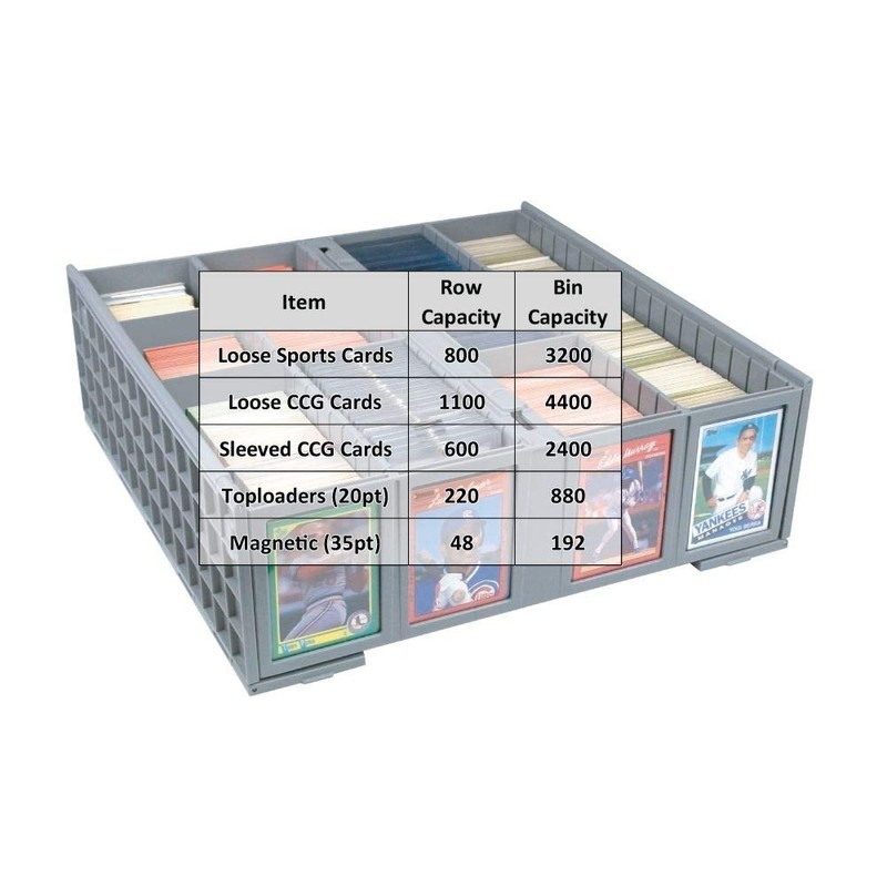 - Rows are wide enough to hold toploaders, magnetics, and deck boxes