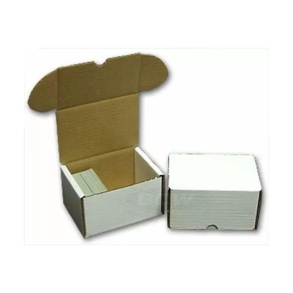 The BCW Storage Box is the highest quality, most competitively priced cardboard storage box on the market today. They are constructed of white corrugated paper and have a 200 lb. test strength. Use this box to store and protect collectible trading cards like: baseball cards, basketball cards, football cards, Magic The Gathering, Yu-Gi-Oh, Pokemon, and others.