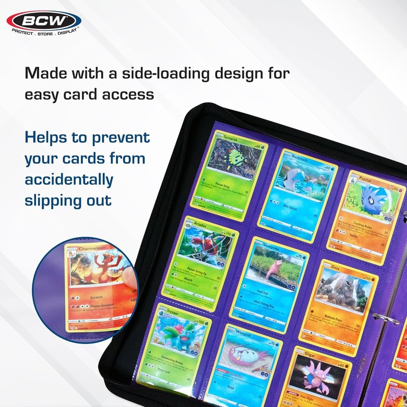 BCW Double-Sided 9-Pocket Pages (50 Purple) | Side-Loading Trading Card Binder Sheets | Card Storage & Display Solution