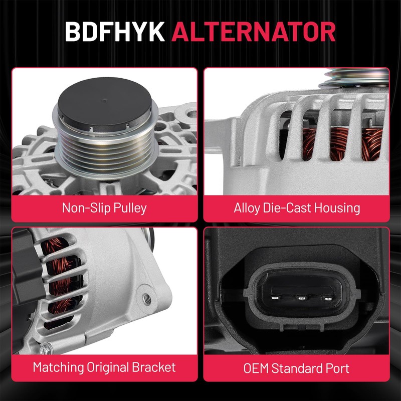 - 【Stable Output】 The BDFHYK alternator delivers consistent power to all vehicle electronics while efficiently charging the battery. Engineered with premium components, it withstands heat, vibration, and harsh road conditions for extended service life
