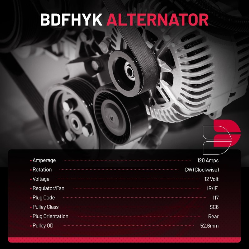 - 【Stable Output】 The BDFHYK alternator delivers consistent power to all vehicle electronics while efficiently charging the battery. Engineered with premium components, it withstands heat, vibration, and harsh road conditions for extended service life