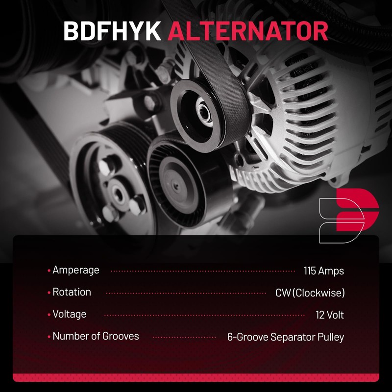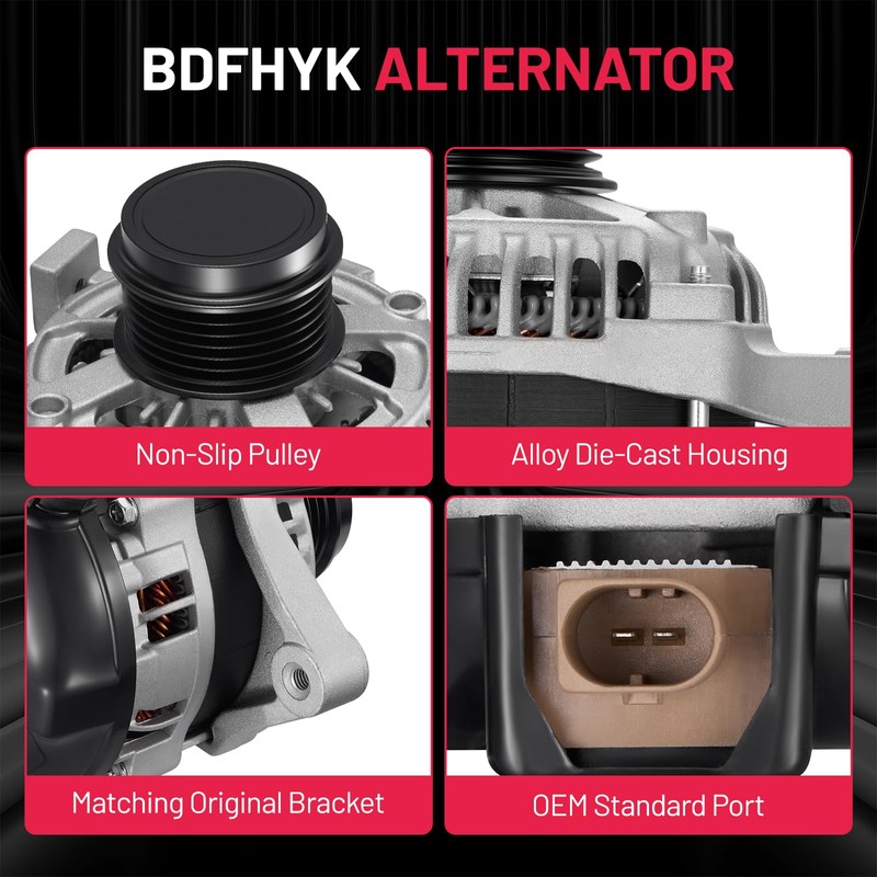 - 【Stable Output】 The BDFHYK alternator delivers consistent power to all vehicle electronics while efficiently charging the battery. Engineered with premium components, it withstands heat, vibration, and harsh road conditions for extended service life