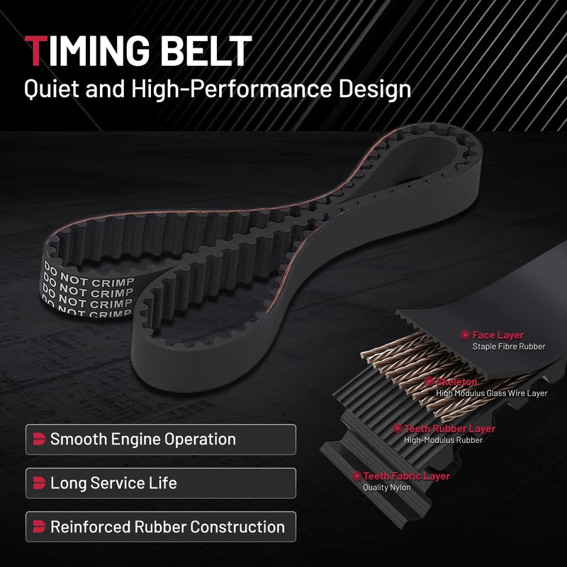- [Feature]: This Complete Timing Belt Kit synchronizes camshaft and crankshaft with precision, delivering smooth valve timing, quieter operation, and better fuel efficiency.