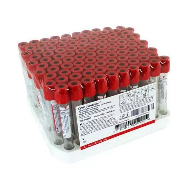 BDN Tubo Vacutainer Bd De 6ml Color Rojo Caja Con 100 Piezas