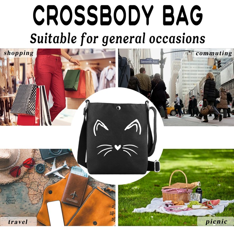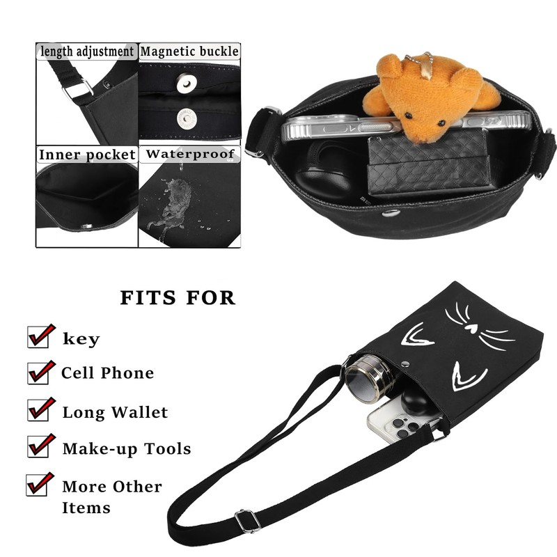 BDPWSS Funny Cat Face Whiskers Print Gifts Cute Kitten Gifts Cat Lover Crossbody Bag for Pet Lovers (cat whiskers blCbagCA)