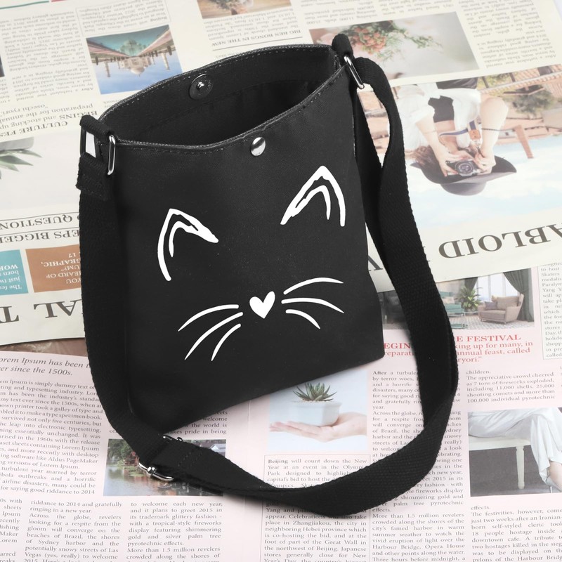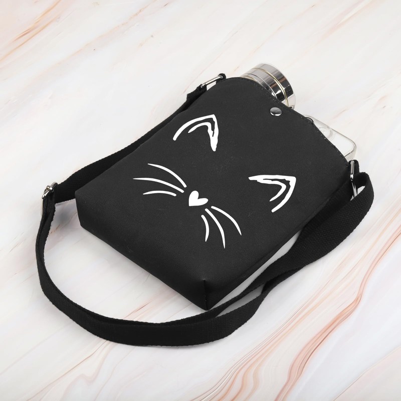 - This bag features a simple cat pattern and a heart-shaped nose design, which is very cute.