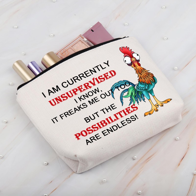 BDPWSS HEI HEI Gifts HEI HEI Rooster Lover Gift I Am Currently Unsupervised i Know It Freaks Me Out Too Heihei Fan Makeup Bag (Endless Rooster bagCA)