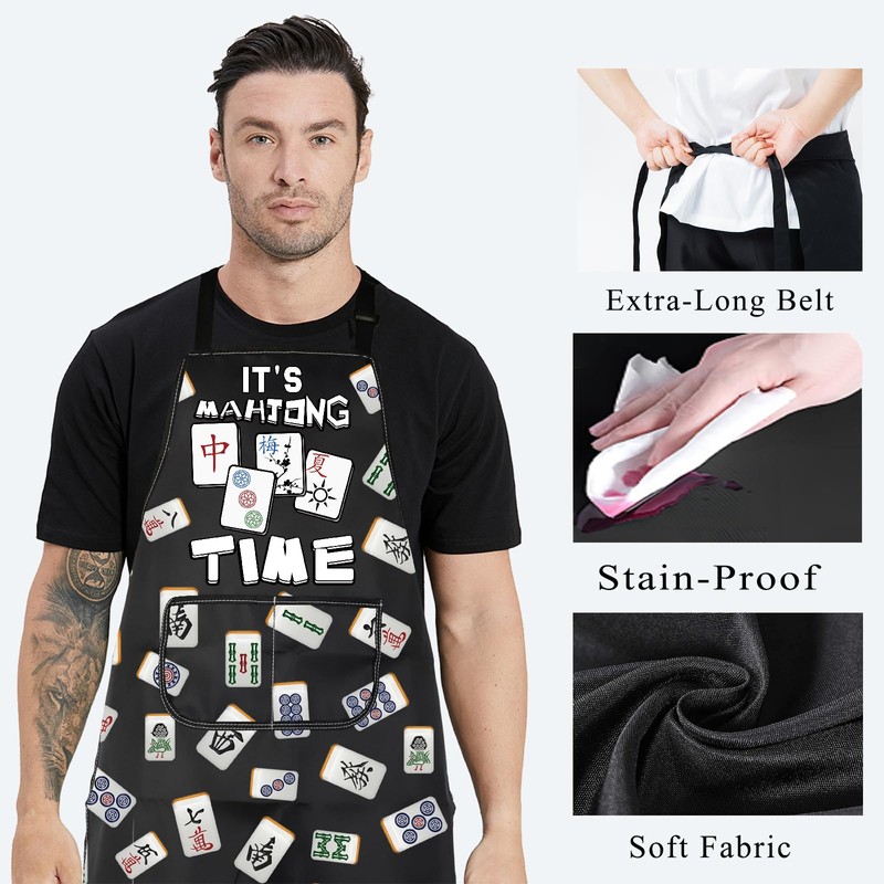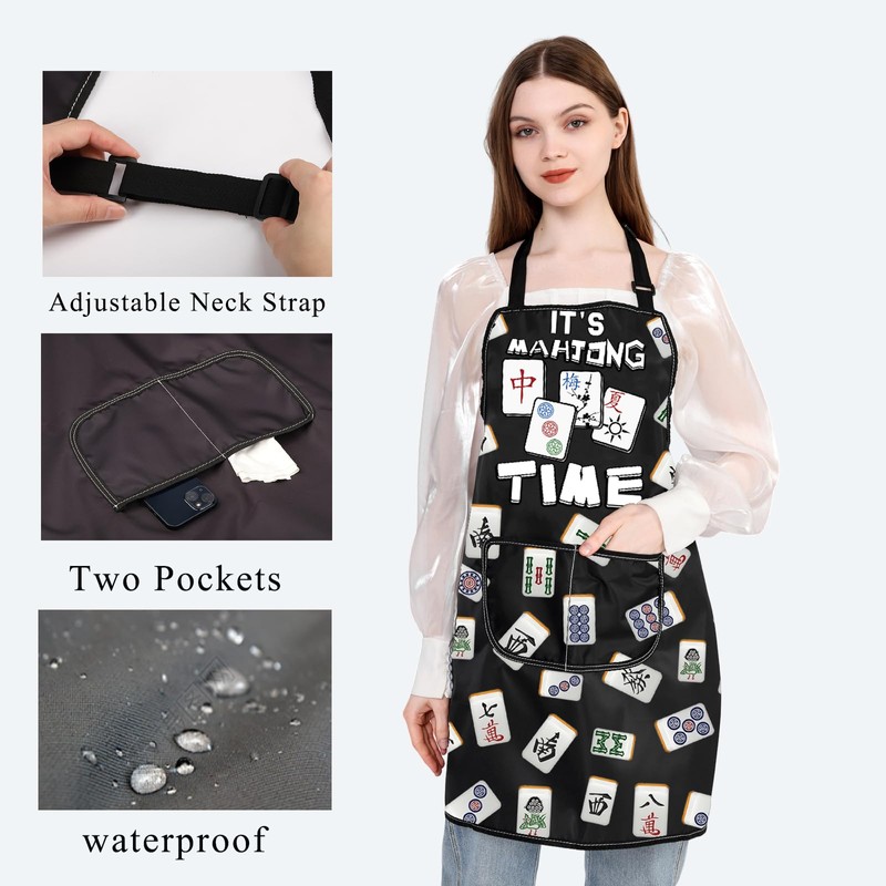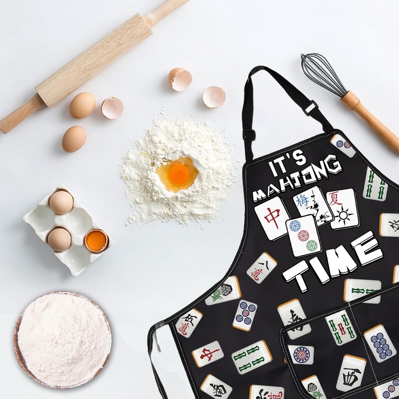 BDPWSS Mahjong Lover Gift Mah Jongg Accessories Mahjong Player Gift It's Mahjong Time Funny Mahjong Themed Cooking Apron (Mahjong time apronCA)