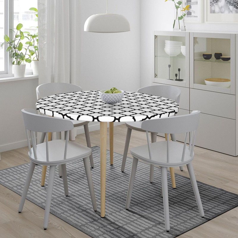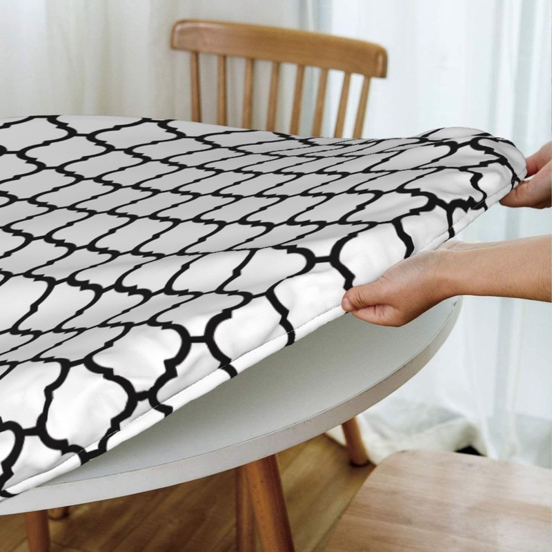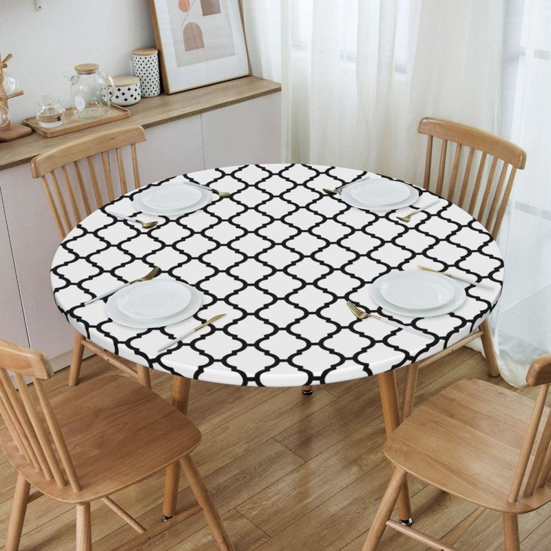 BDUEYFU Round Tablecloth,Waterproof Elastic Fitted Table Covers,Wipeable Table Cloth for Picnic,Camping,Dining,Indoor and Outdoor White and Black Diameter 44"