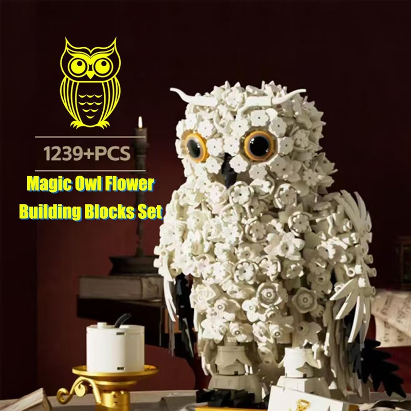 • This Animal Magic Owl Flower Building Blocks Set is rich in a sense of mystique,The main structure of the owl is composed of countless small flowers pieced together, standing on a magic block book with a small candle next to it.