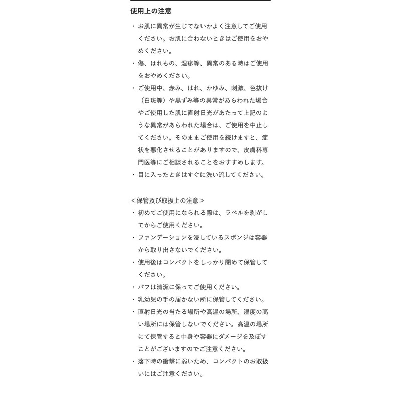 - Storage and Care Instructions: Please remove the label before using it for the first time. Please do not remove the sponge that is dipping the foundation from the container. Please close the compact size after use. Please keep the puff clean before using. Keep out of reach of infants. Do not store in places exposed to direct sunlight, high temperatures, or high humidity. Please note that storing in high temperatures may cause damage to the contents and containers. Please handle it compactly as it is vulnerable to impact when dropped