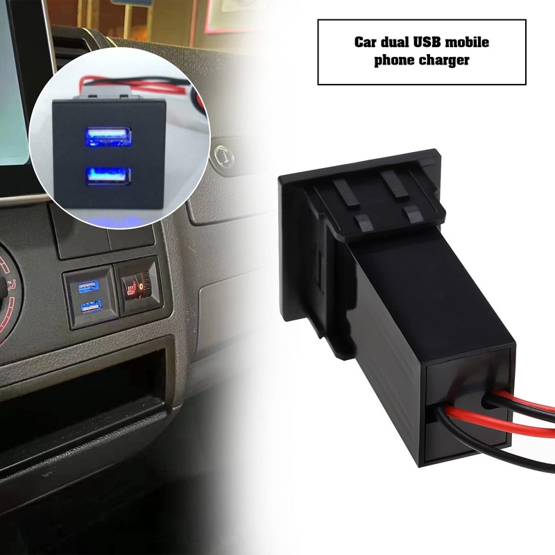 Be In Your Mind 2Pcs OEM Style Dual USB Charger Piggy Back Fuse Wiring Harness Replacement Compatible with VW T5 2003-2009 OEM Dual USB Phone Charger Ports 2 x 2.1Amps 12V - 17V