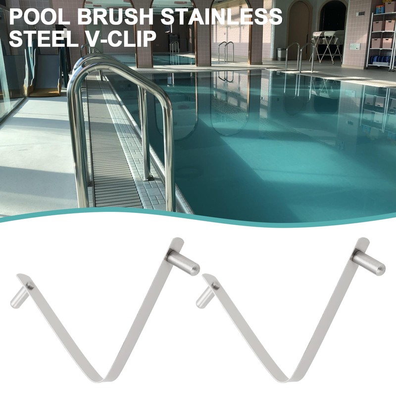 Be In Your Mind 6 Piece Pool Brush Clip V-Shaped Clips Stainless Steel Pool Clips Double Pin Spring V Clip for Swimming Pools and Spa Skimmer Nets Brushes
