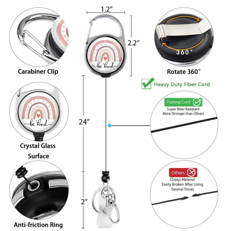 - 【Novelty Design】It`s time to throw away the dull badge holders and badge reels! They are printed with rainbow arts: Be Kind, which are cute and stylish. If you want to change your tedious life, you can start with this colorful and unique badge holder, which comes with a cute lanyard and a lovely retractable badge reel.