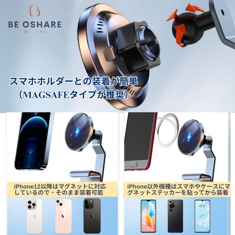 • Compatible with Smartphone Holders: Magsafe compatible products are recommended, but it is also compatible with many other smartphone holders (if the ball is attached). All Be Oshare phone holders are compatible with this product