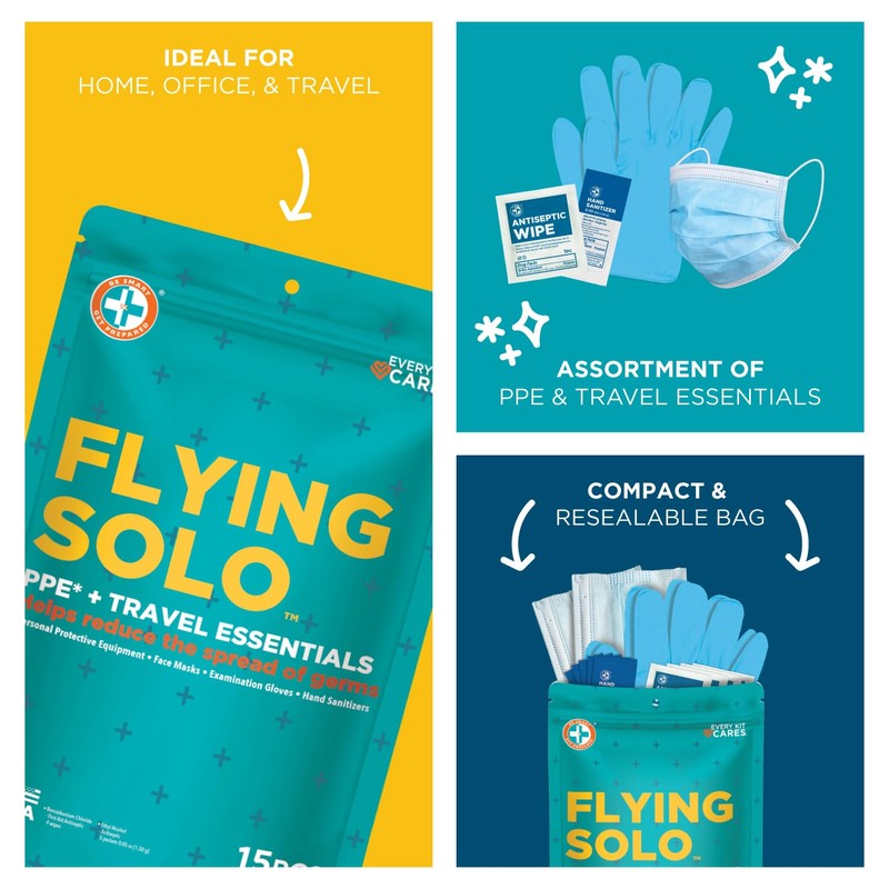Be Smart Get Prepared Flying Solo PPE & Travel Essentials Kit - 15 Pieces - D...