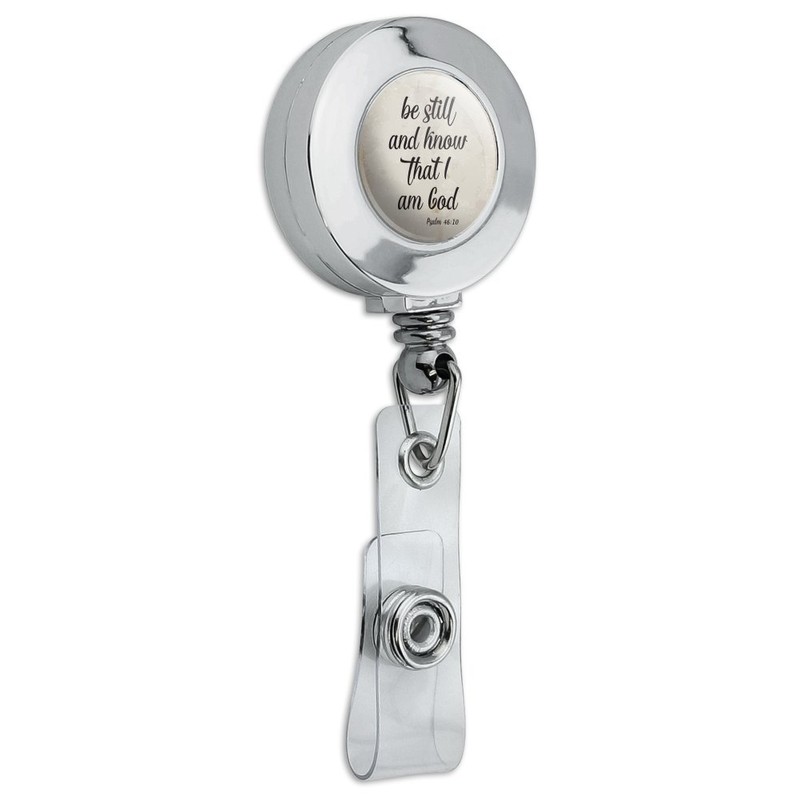 Be Still and Know That I am God Psalm Inspirational Christian Retractable Reel Chrome Badge ID Card Holder Clip