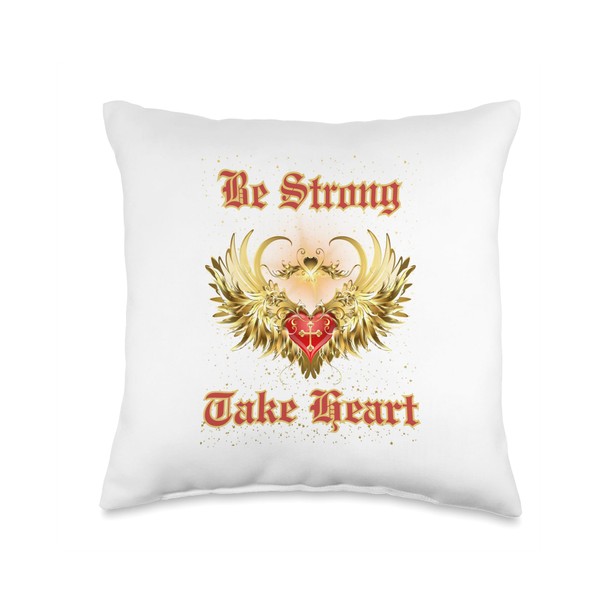 Be Strong and Take Heart (Christian, Cross, Wing, Heart) Throw Pillow